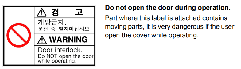 Figure1.3 Safety labels attached to the inside of the machine at the front