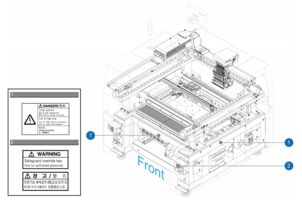Figure1.1 Safety labels attached on the front part of the machine