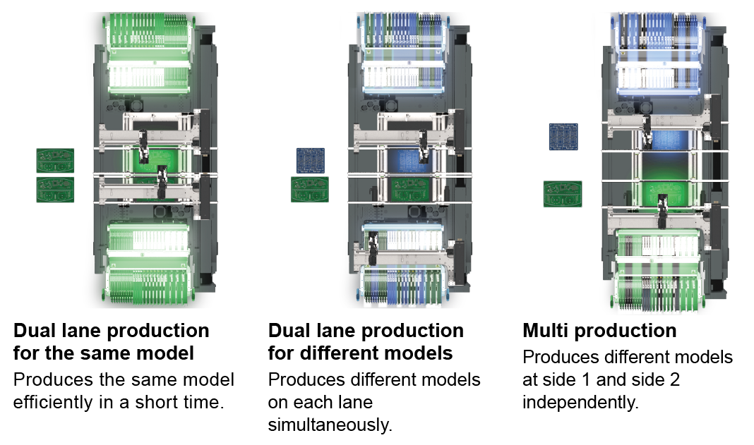 The machine flexibly supports various production for users in a variety of sectors including EMS, automotive industry, and more.